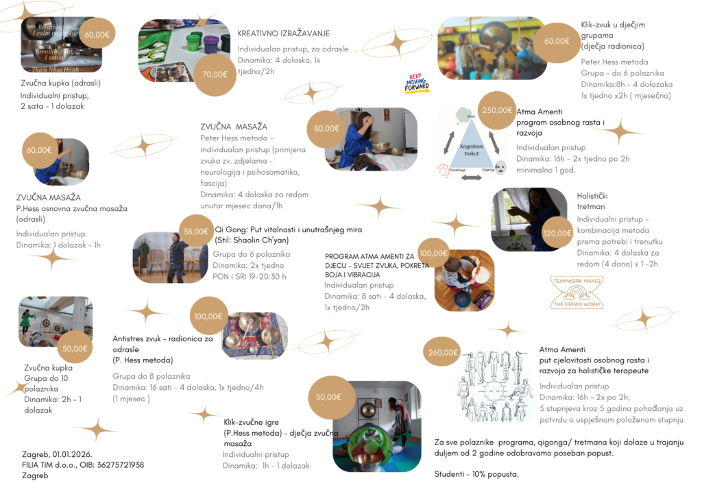 Molimo posjetitelje web stranice i potencijalne buduće polaznike da se prije kontaktiranja detaljno upoznaju s ponudom te, prema potrebi, posavjetuju s kvalificiranom stručnom osobom u vezi svog zdravstvenog stanja i odabira programa. Na taj način moguće je jasnije sagledati kako odabrana ponuda može pružiti podršku u poboljšanju kvalitete života.